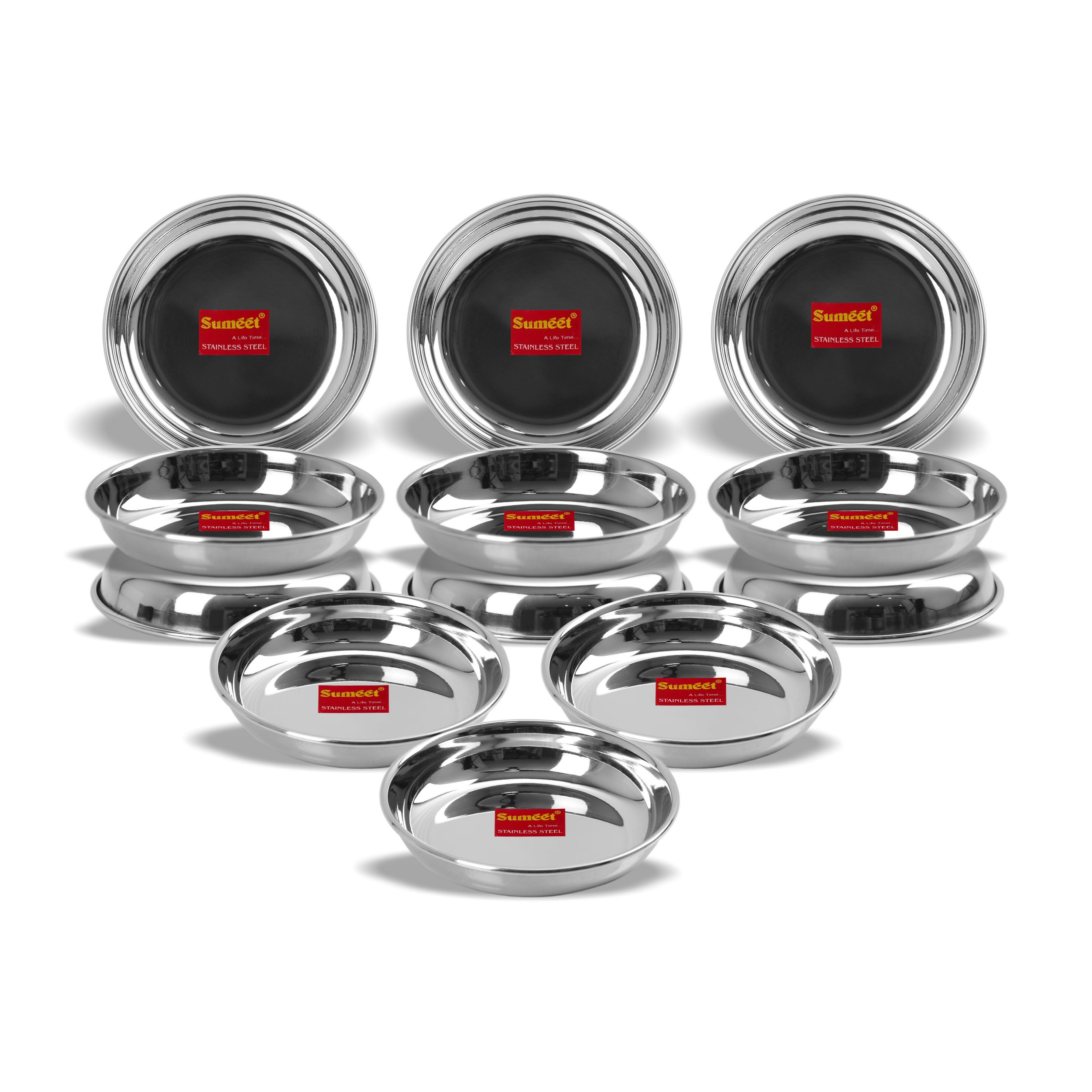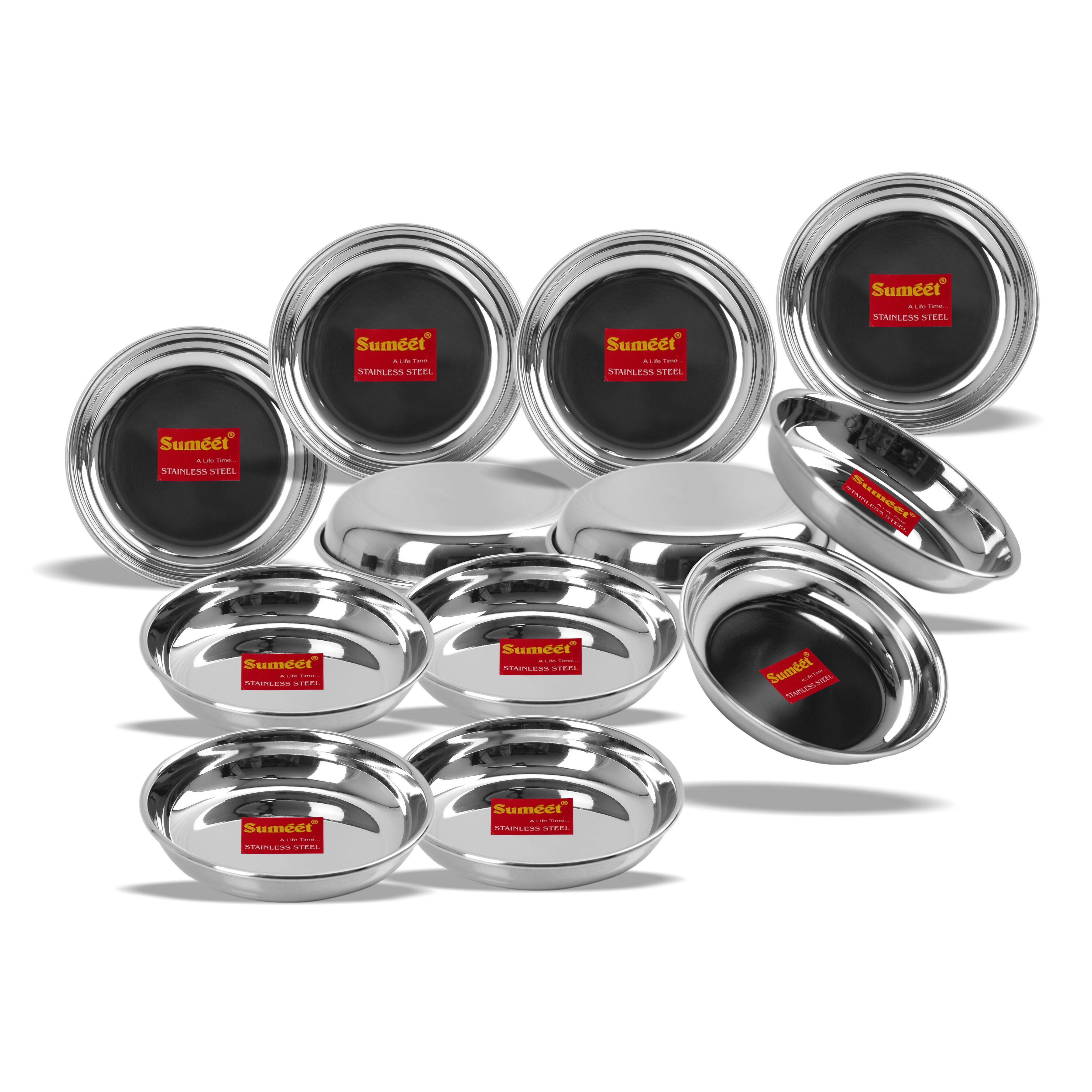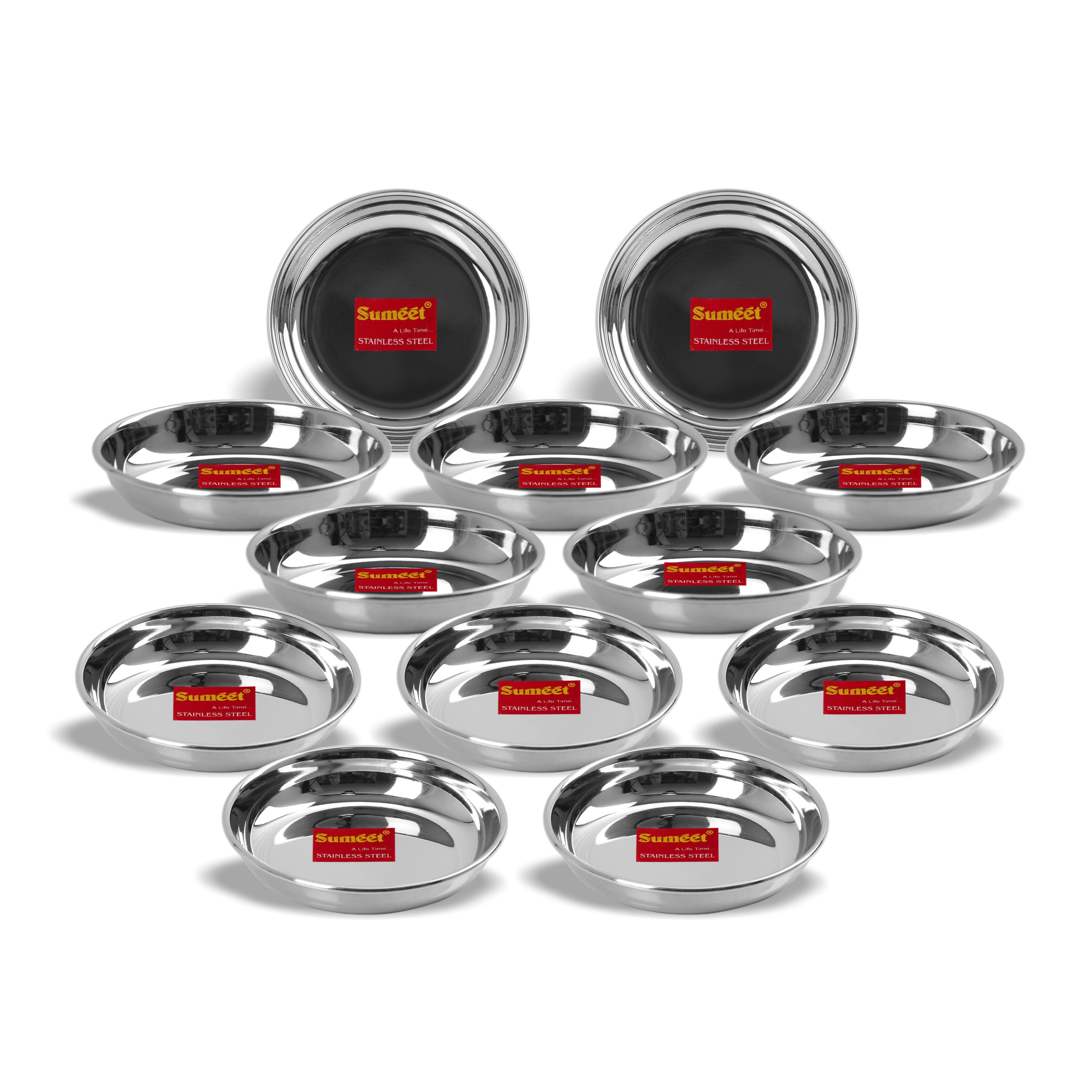 • Sumeet Stainless Steel Heavy Gauge Small Halwa Plates with Mirror finish 11cm Dia – Set of 12pc