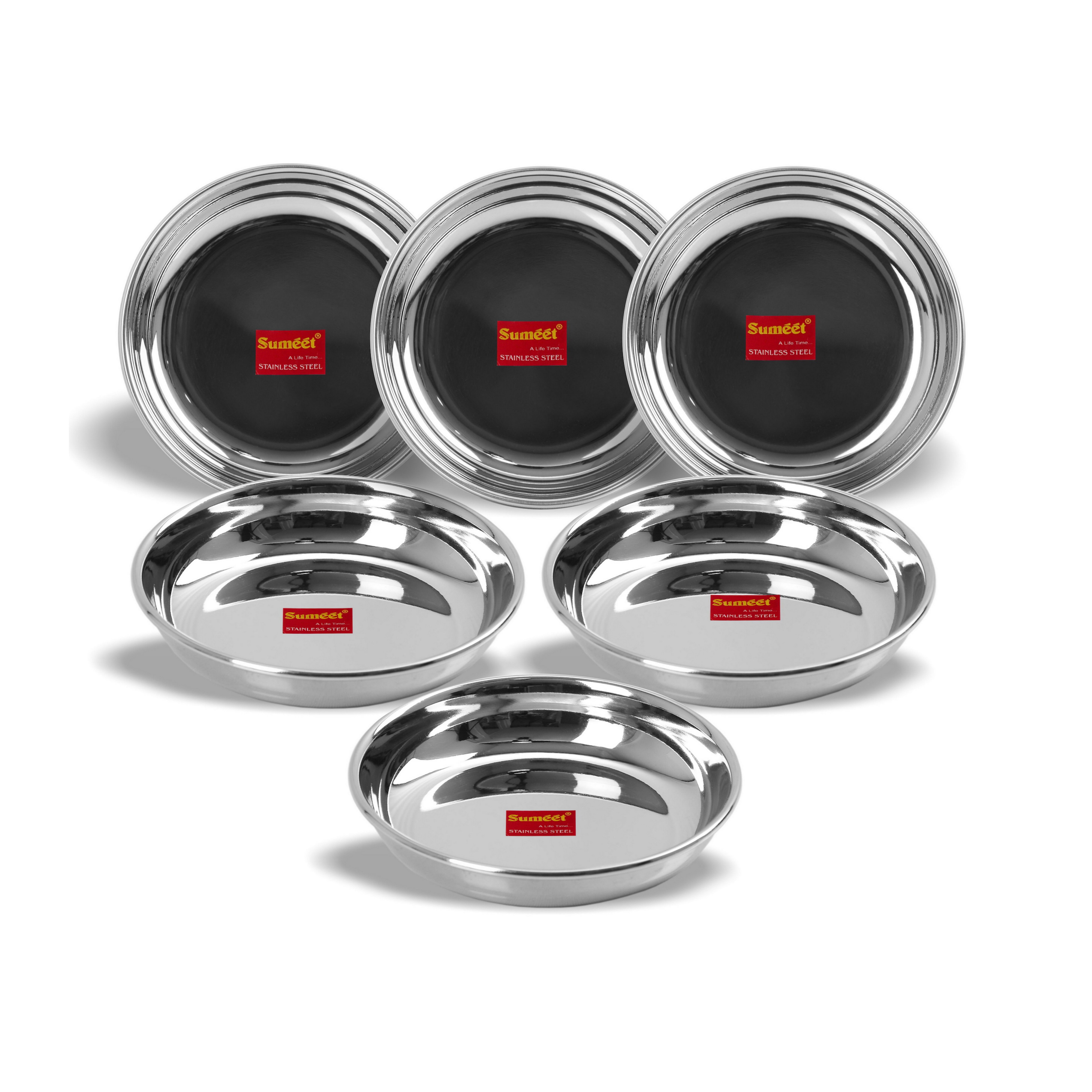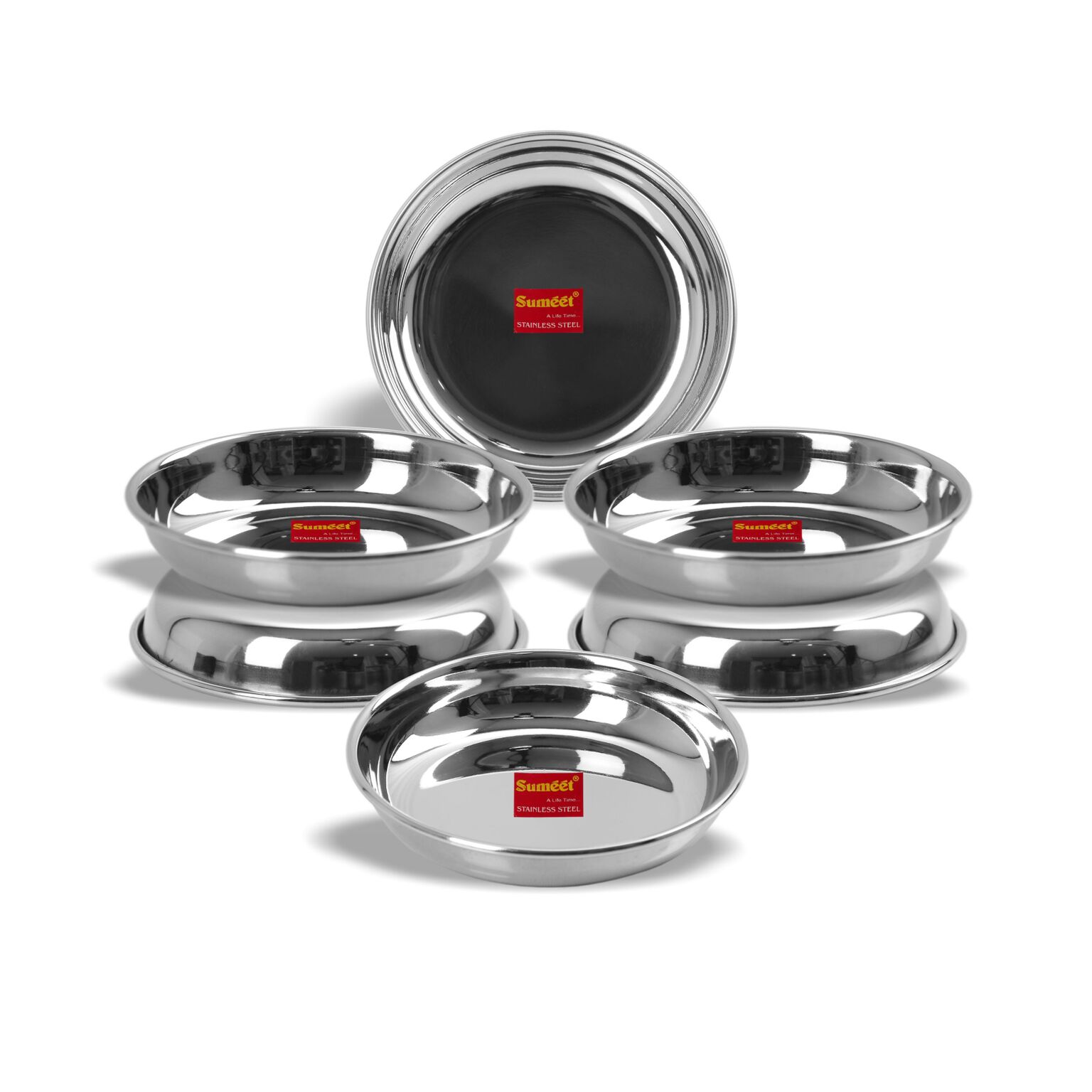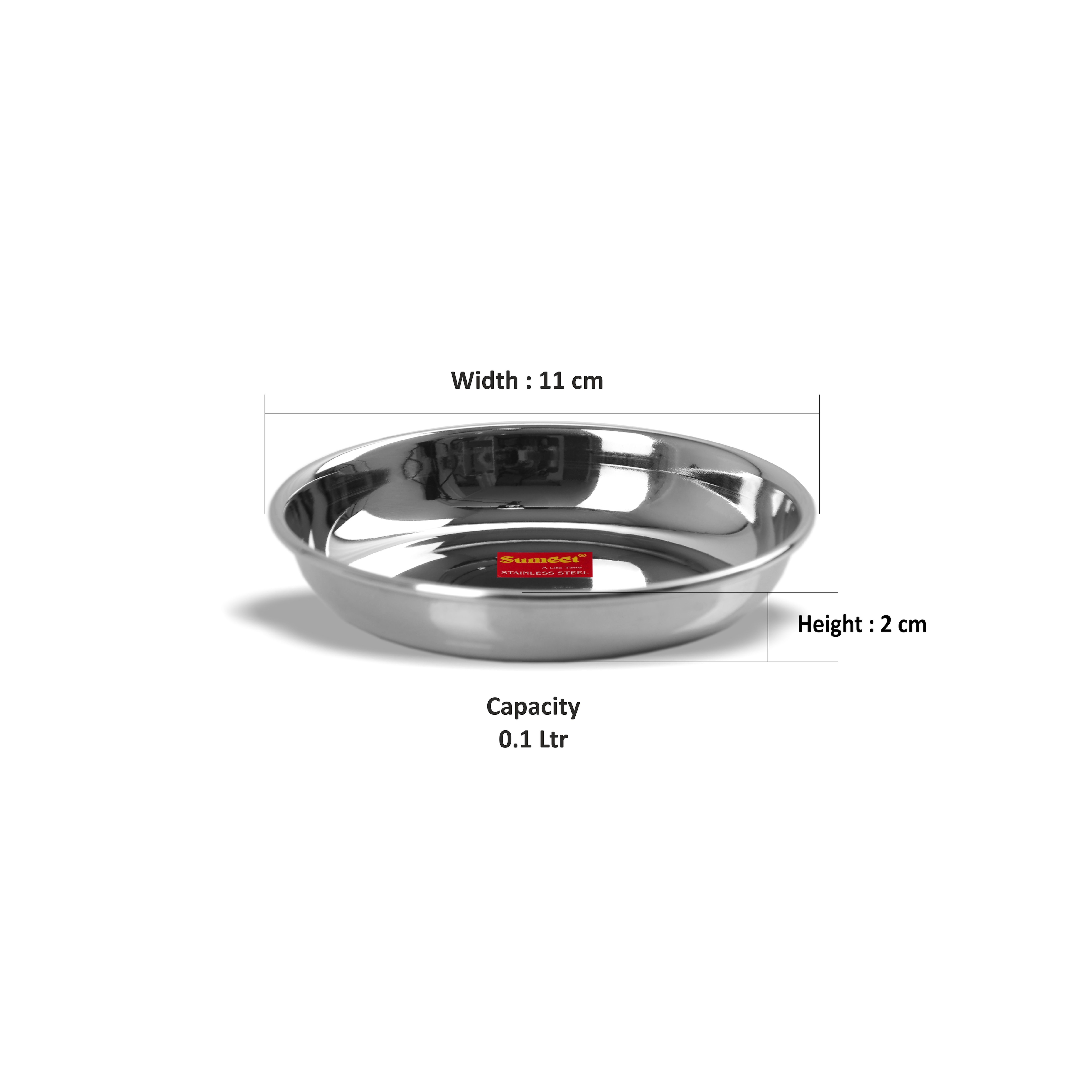 • Sumeet Stainless Steel Heavy Gauge Small Halwa Plates with Mirror finish 11cm Dia – Set of 6pc