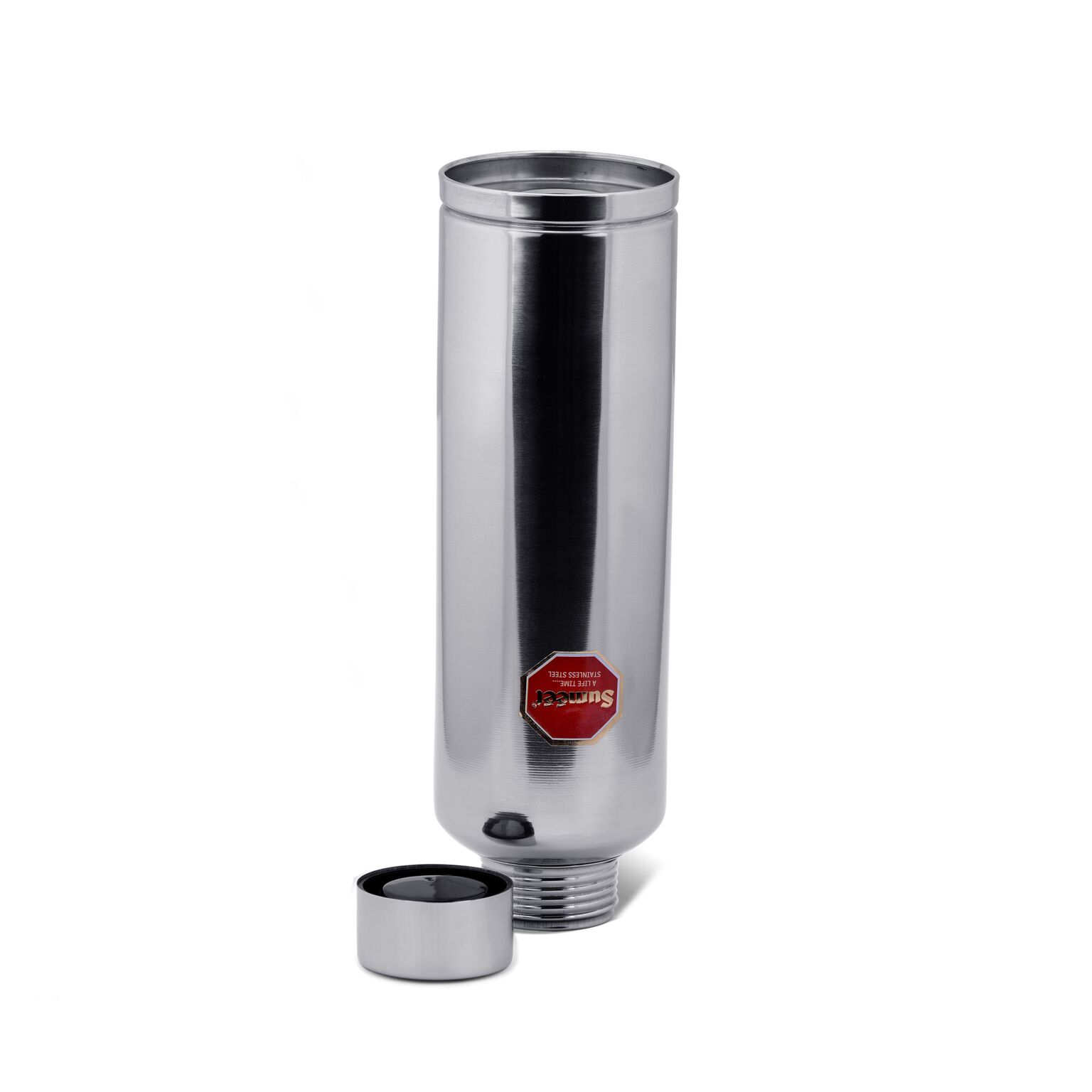 Introducing the stylish and easy to carry Sumeet Fridge Water Bottle. Made of high grade stainless steel, the Sumeet Fridge water bottle keeps your liquids safe with no contamination. Our bottles are created with airtight leak proof tops. Additionally, the mouth of the bottle is sufficiently broad for quick & easy cleaning. This water bottle is a must have accessory for any home or office. It is ergonomically designed for a comfortable grip, and its compact size allows for easy storage of the bottle in the door panel of the refrigerator. Sumeet Water Bottles are free from BPA (Bisphenol A) BPA is an industrial chemical that has been used to make certain plastics and resins, so you don’t have to worry about harsh chemicals. Sumeet makes sure to not hamper your health. Our bottle is a safe choice for your family. The bottle is dishwasher safe and can be stored in the freezer as well. The trendy design allows the container to fit in your hands comfortably its quality ensures durability & Keeps Drink at Room Temperature. They are easy to wash, sturdy and long lasting with a strong durable body.
