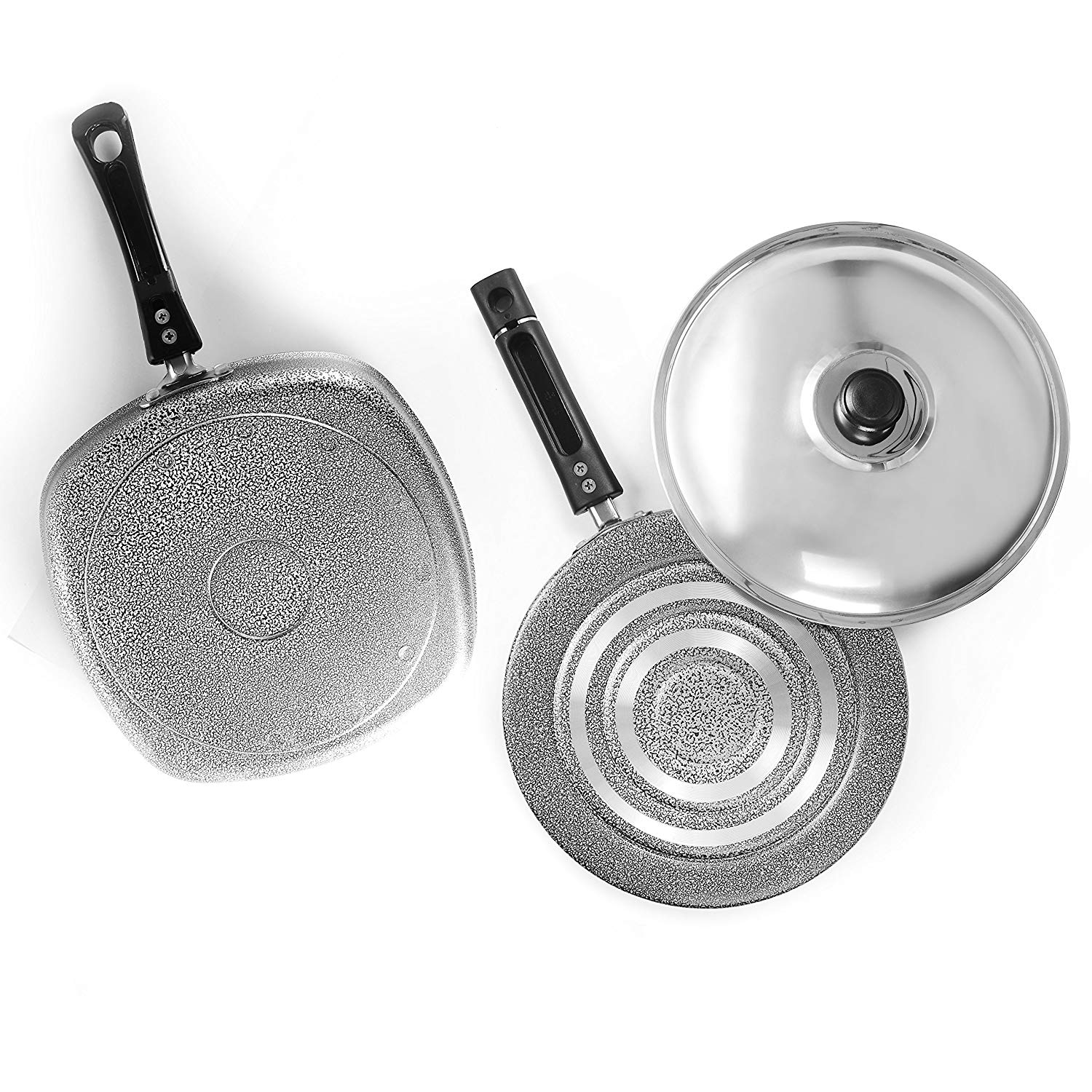• 3 Layer Nonstick Coating + Strong Glass Lid